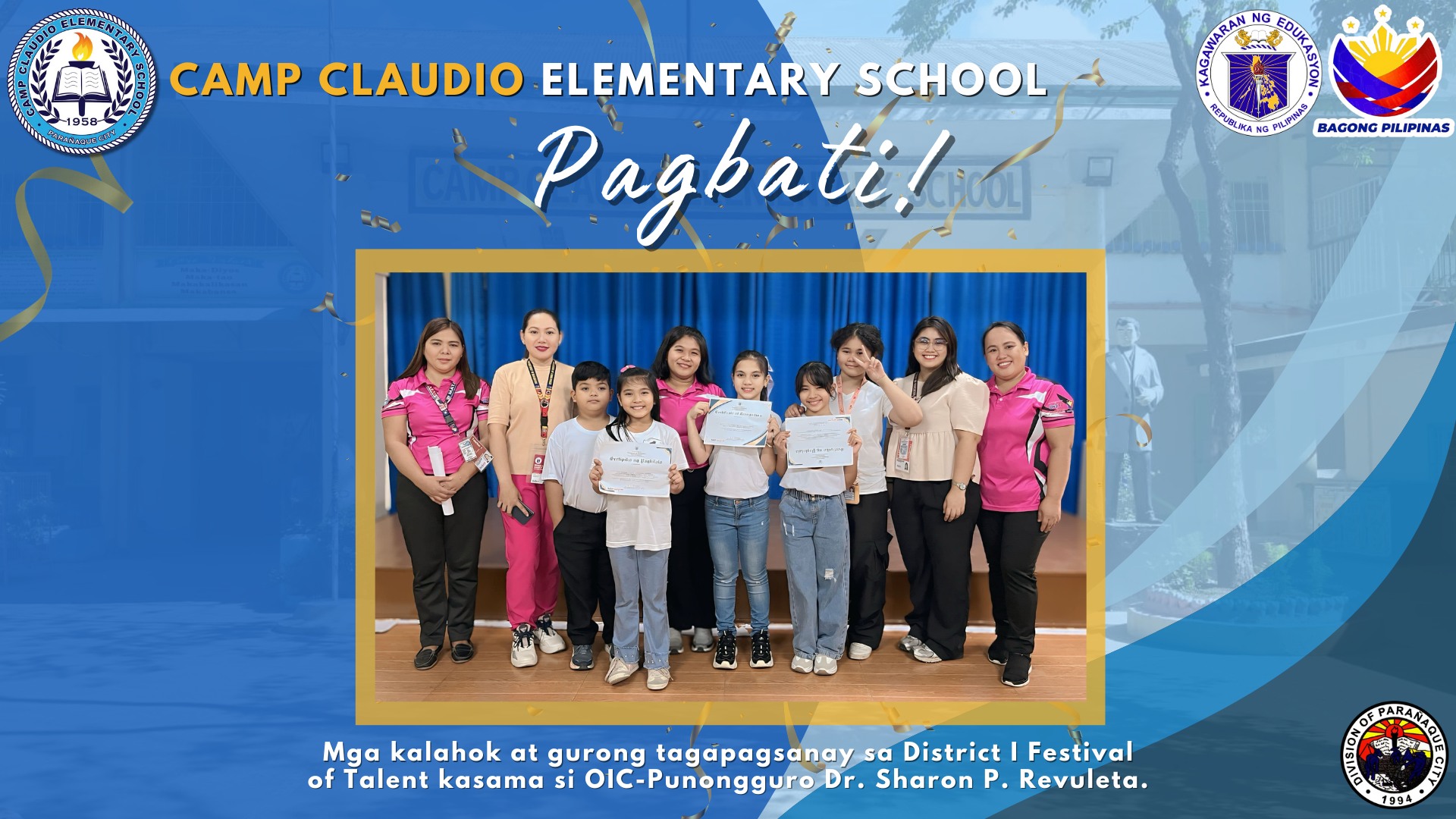 Triumph at the District 1 Festival of Talents 2025 January 31, 2025 By: Ma. Jenelie R. Patricio | Teacher I On January 31, 2025, selected pupils from CCES brought home prestigious awards in the District 1 Festival of Talents (DCFOT) held at Baclaran Elementary School Central, Baclaran Elementary School II, and Baclaran Elementary School I. continue reading : Triumph at the District 1 Festival of Talents 2025
