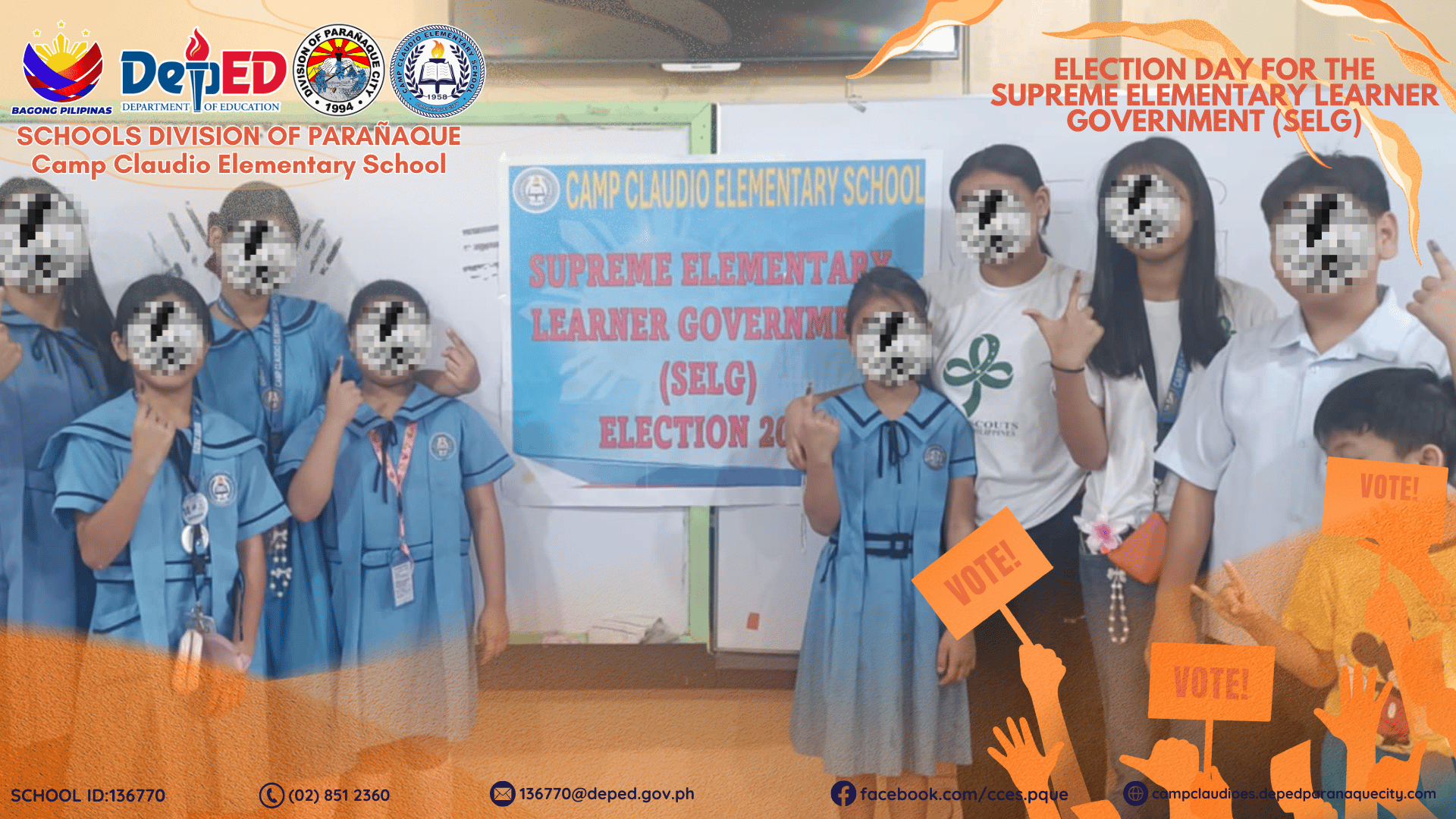 CCES Holds Successful SELG Election: Empowering Young Leaders February 26, 2025 By: Ma. Jenelie R. Patricio | Teacher I The Supreme Elementary Learner Government (SELG) Election was successfully held on February 26, 2025, where students exercised their right and responsibility in choosing a new set of leaders. Through a smooth and meaningful election process, a continue reading : CCES Holds Successful SELG Election: Empowering Young Leaders